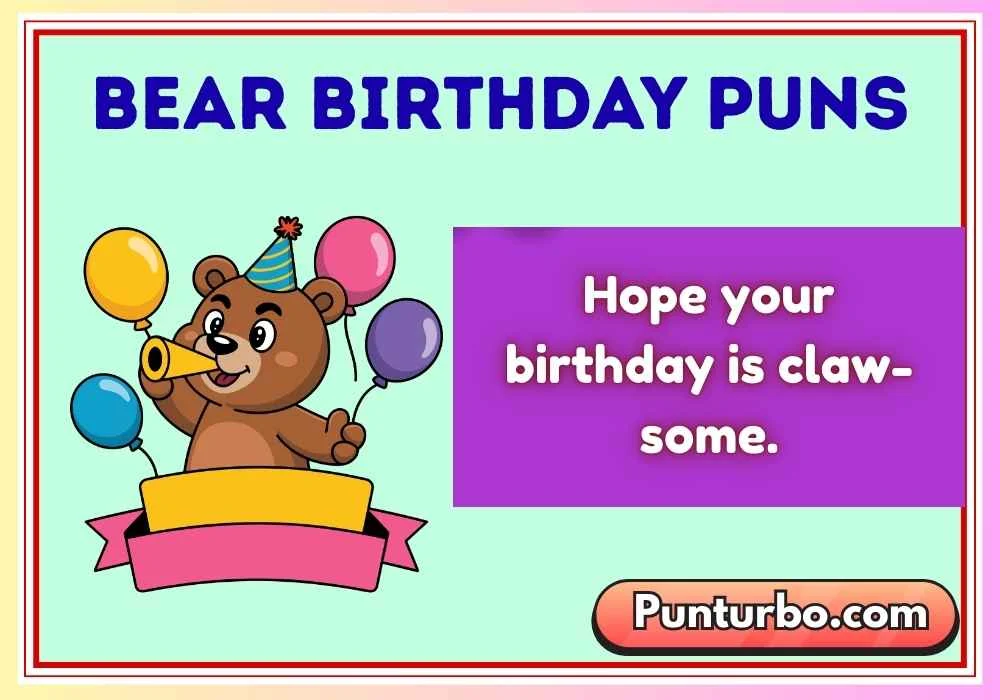Bear birthday puns are funny wordplays that combine bear-related words with birthday jokes to create humorous messages for cards, captions, or social posts.