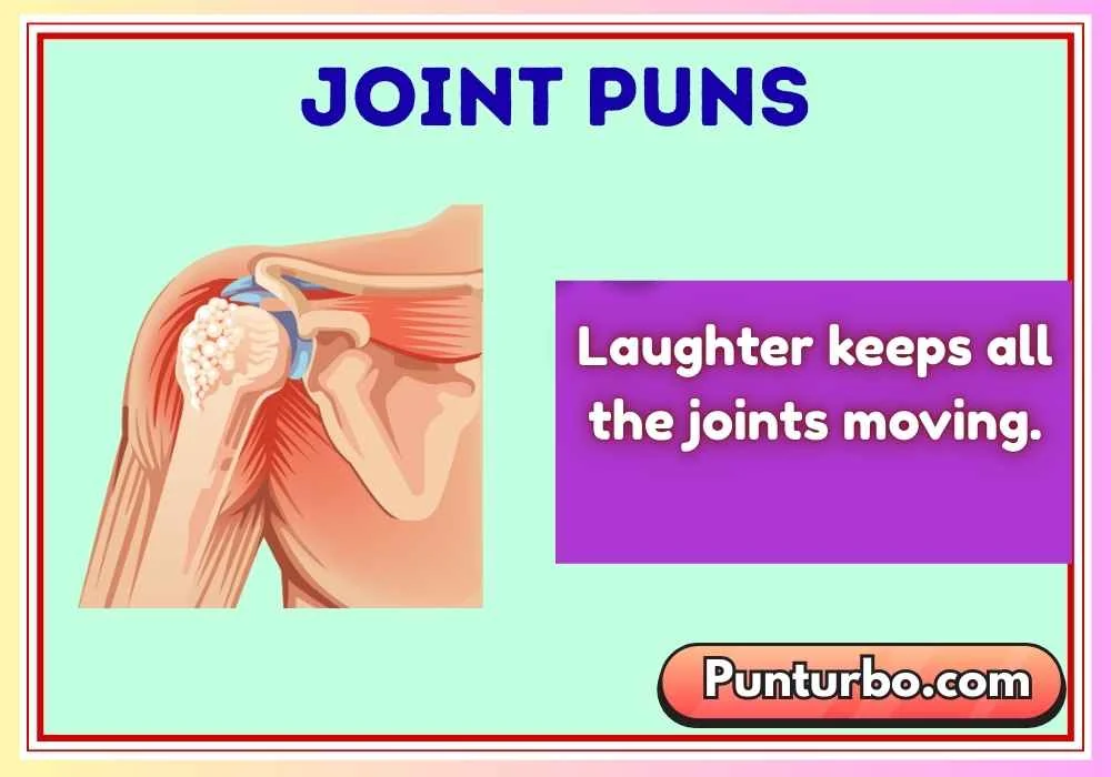 Joint puns are jokes or wordplay that use the word “joint” or body joints like knees and elbows to create funny double meanings.