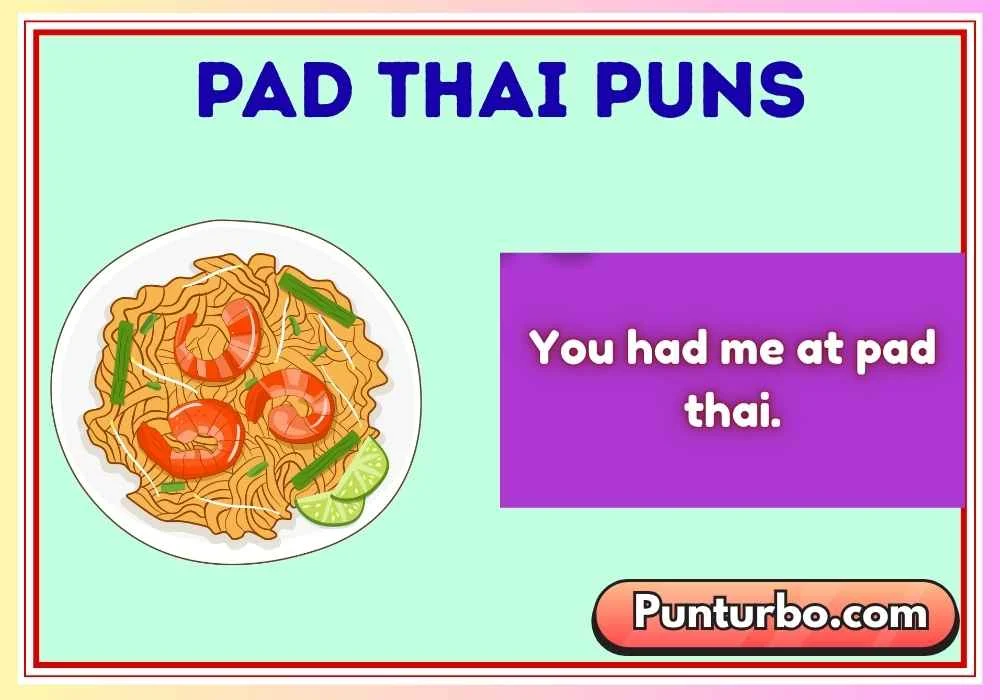 Because food humor is universal. Pad thai has recognizable ingredients like noodles, peanuts, lime, and sauce that make it perfect for clever wordplay.