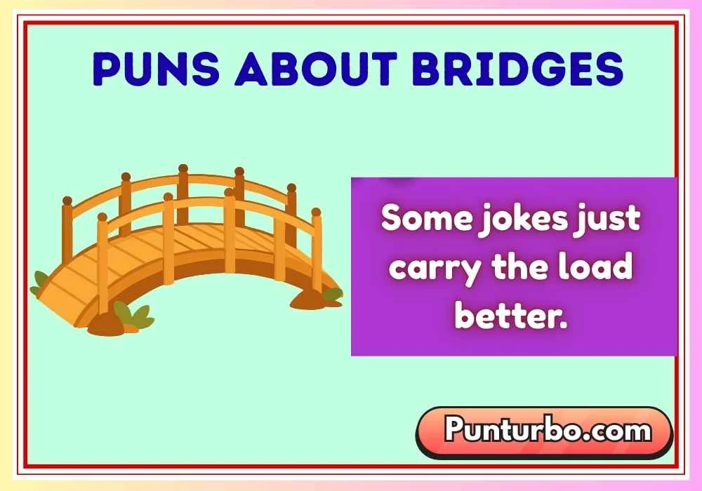 Bridge puns are jokes or wordplay based on bridges, crossing, arches, connections, and structures. They combine humor with everyday language related to bridges.