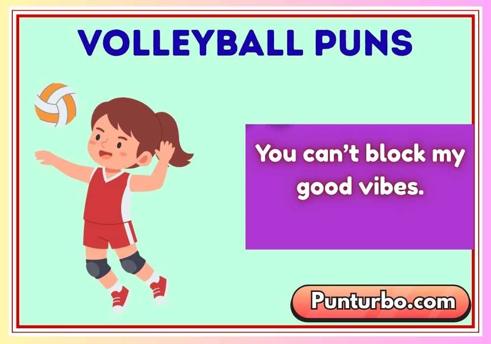 Volleyball puns are jokes or wordplay that use volleyball terms like serve, spike, dig, set, and block to create funny or clever sentences.